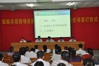 2013年5月30日,广东省对外贸易职业技术学校教学楼三楼远程课室座无虚席,学校国家级示范校项目建设启动仪式暨项目责任书签约仪式在此隆重举行。校领导及全校教职员工出席了大会,会议由陈青恩副校长主持,会议有如下三项议程: